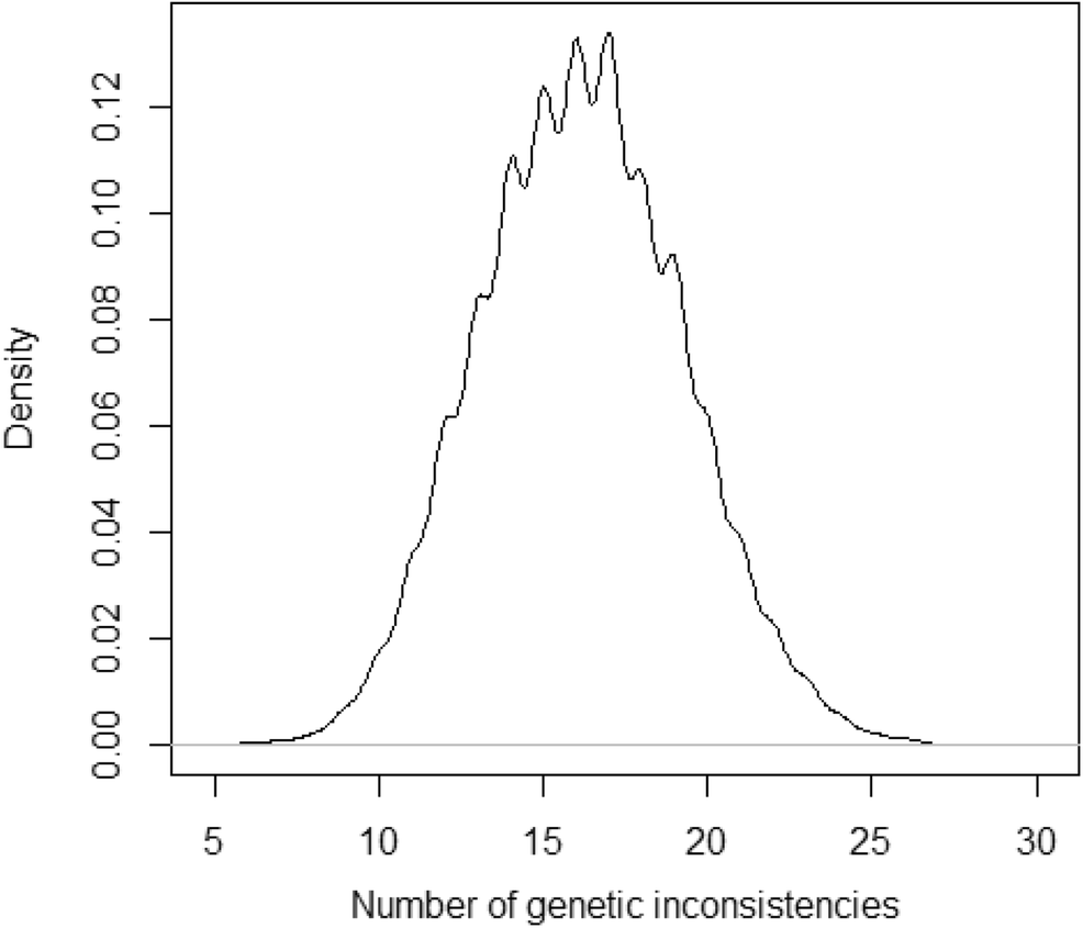 Two tested individuals being half siblings (H1) versus being unrelated (H2)