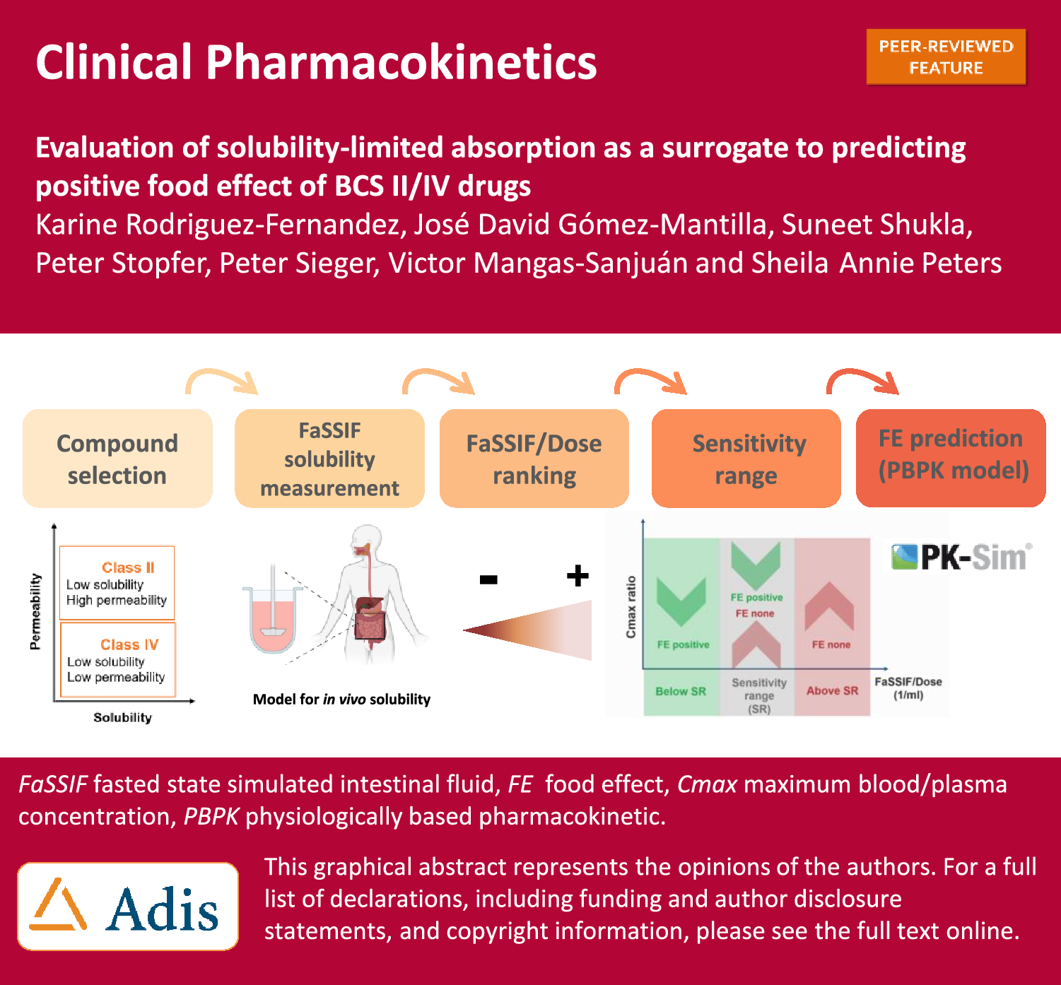 Rodriguez-Fernandez K, Gómez-Mantilla J, Shukla S, et al. Solubility-limited absorption identified by a simplified PBPK model for the prediction of positive food effect of BCS II/IV drugs. Clin Pharmacokinet 2024. https://doi.org/10.1007/s40262-025-01472-w.