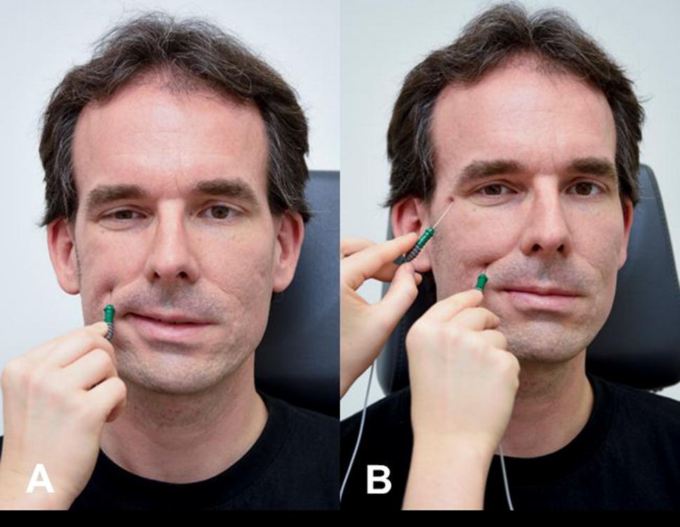 Like nEMG, sEMG works with voluntary activity of the facial muscles and not with external stimulation. The recording field and therefore the depiction of MUAPs is more superficial but the field is larger than when using nEMG