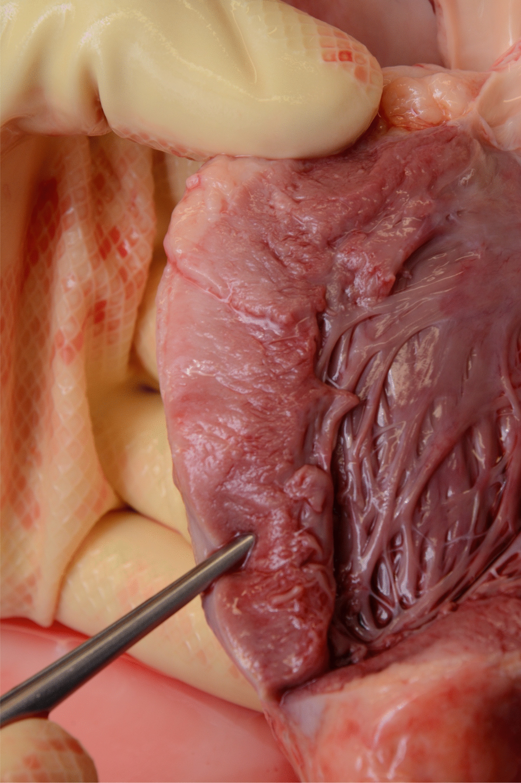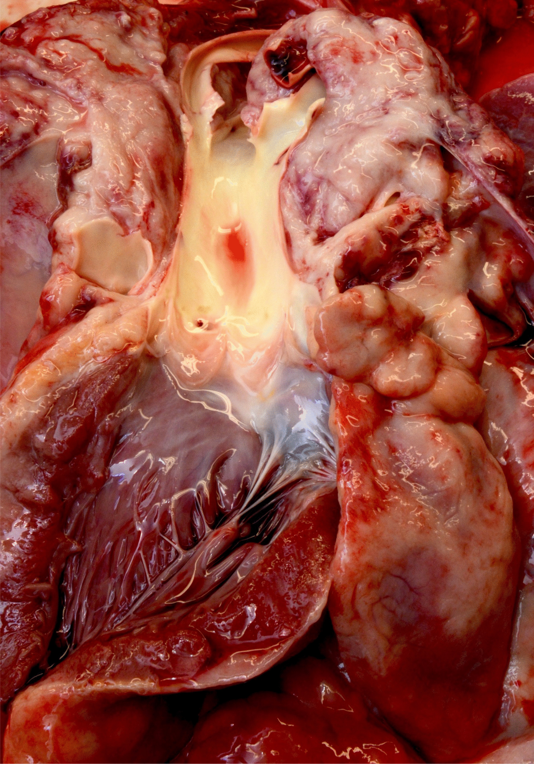 The heart weighed 320 g, which is almost three times higher than healthy hearts of children in the same age group [1]. This was caused by massive infiltration of tumor tissue. The epicardium showed clearly accentuated vessels. In addition, the heart was almost completely covered by a white, rough tumor mass. On sections through the myocardium, yellow–brown infiltrations were visible, especially in the area of the left ventricle (Figs. 3 and 4).