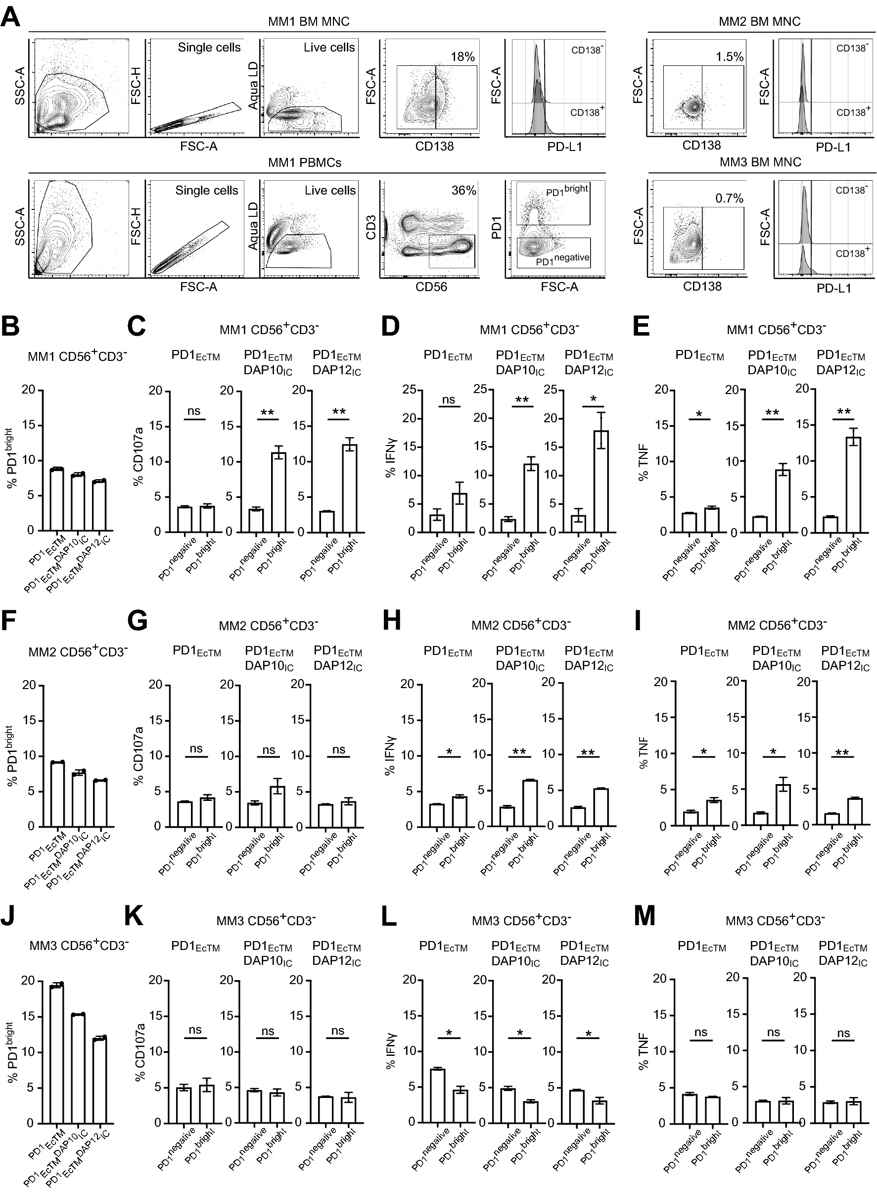 PD1EcTMDAP10IC+ and PD1EcTMDAP12IC+ pNK cells from patients with newly diagnosed MM increase degranulation and cytokine production against autologous PD-L1+ tumor samples