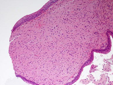 Treatment is by local excision, with recurrence rates at only around 2-3 % if completely excised [7], but there is a 21 % recurrence rate for tumours excised without definitive excision margins [2]. CO2 laser excision has proven an adequate means of removing the tumour with negative margins [8]. Malignant transformation occurs in around 1–2 % of granular cell tumours, but only one case has been recorded of malignancy in laryngeal granular cell tumours [9].