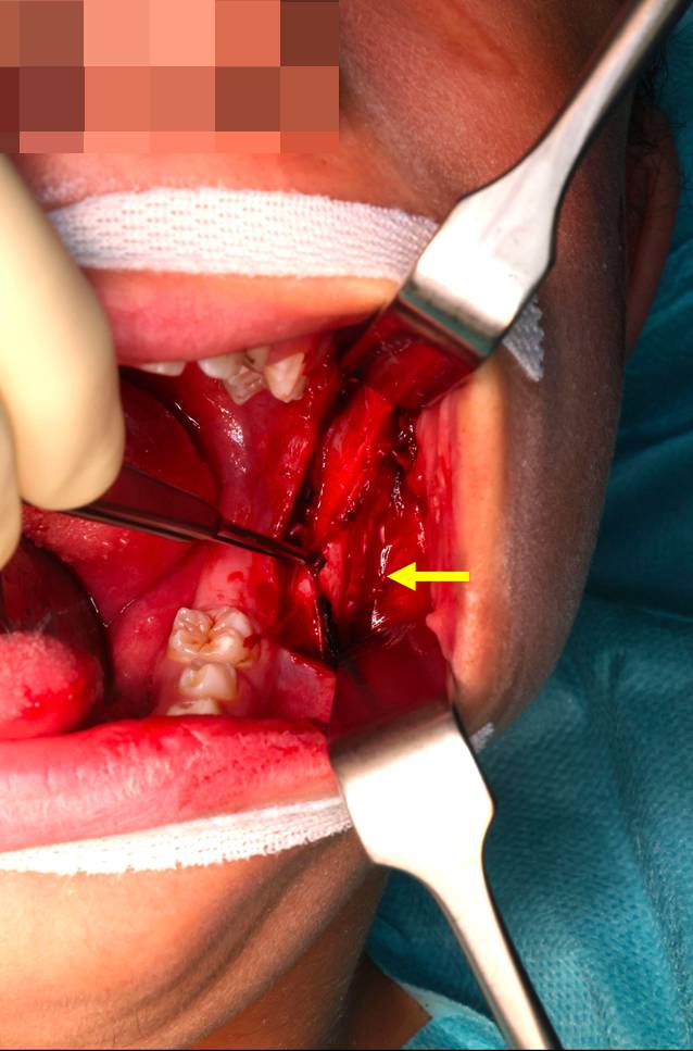 Postoperativ zeigte sich die Patientin durchgehend stabil und unter adäquater Analgesie schmerzkompensiert. Der Kopfdruckverband über der linken Wange wurde gut toleriert. Es kam postoperativ zu keiner Nachblutung sowie einer regelrechten Wundkonsolidierung, sodass die Patientin am zweiten postoperativen Tag in die Häuslichkeit entlassen werden konnte. Im Rahmen der ambulanten Nachsorge zeigte sich eine beschwerdefreie Patientin ohne tastbare Schwellung über dem linken M. masseter sowie nun fehlenden Schmerzen beim Kauen.