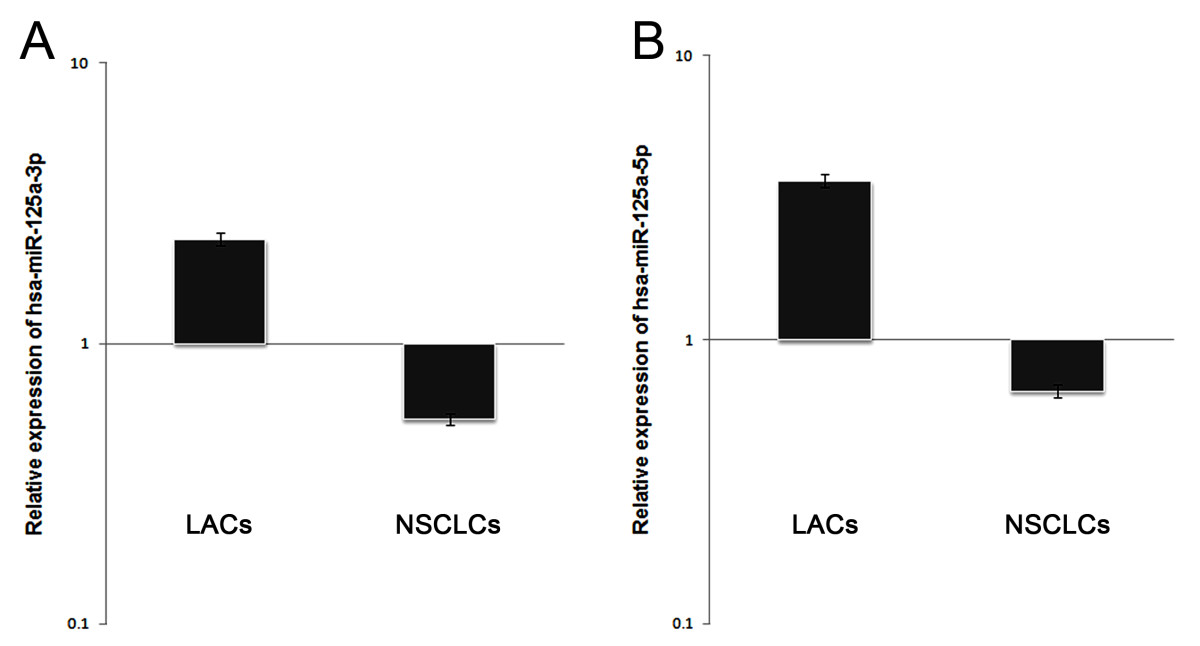 Downregulation of hsa-miR-125a-3p/-5p expression in NSCLC tissues