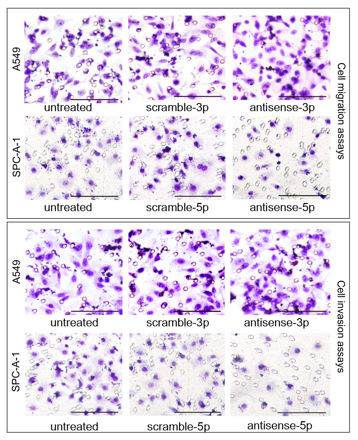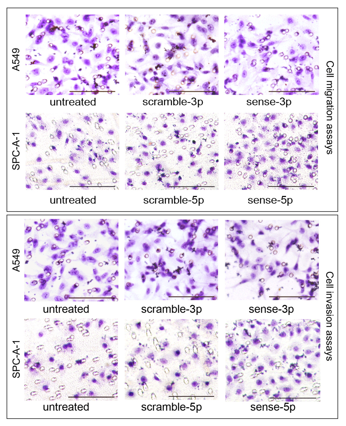 Expression of hsa-miR-125a-3p/5p in NSCLC tissues was explored using real-time PCR. The relationships between hsa-miR-125a-3p/5p expression and pathological stage or lymph node metastasis were assessed using the Spearman correlation test. For in vitro studies, lung cancer cells were transfected with sense and antisense 2'-O-methyl oligonucleotides for gain-of-function and loss-of-function experiments. Transwell experiments were performed to evaluate cellular migration and invasion.