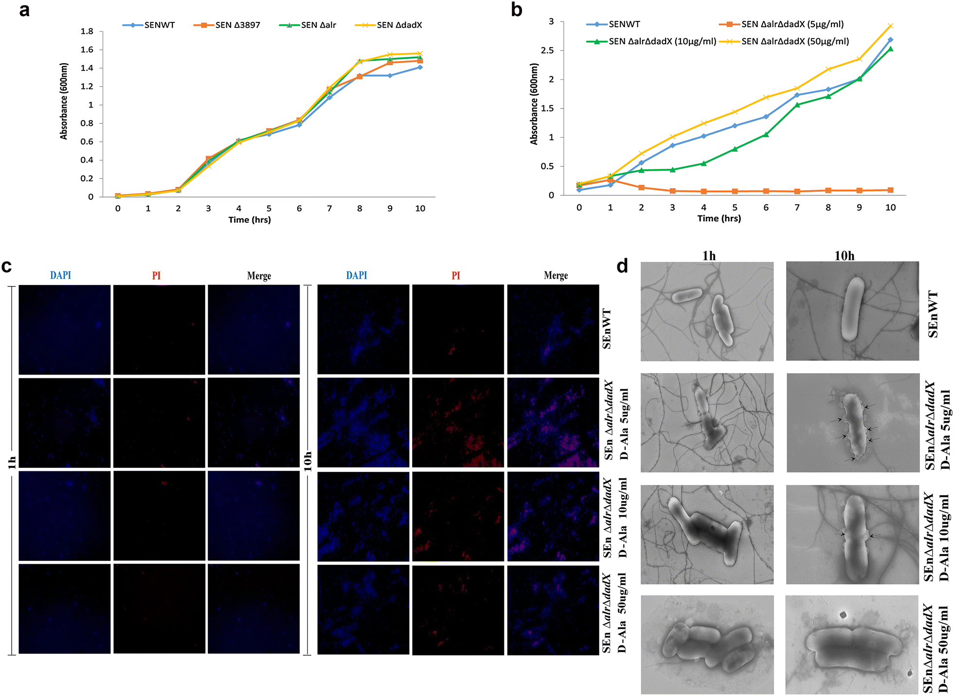 dadX (sole presence of SEN3897) displayed signs of growth defects, membrane integrity loss and structural modifications with the depletion of