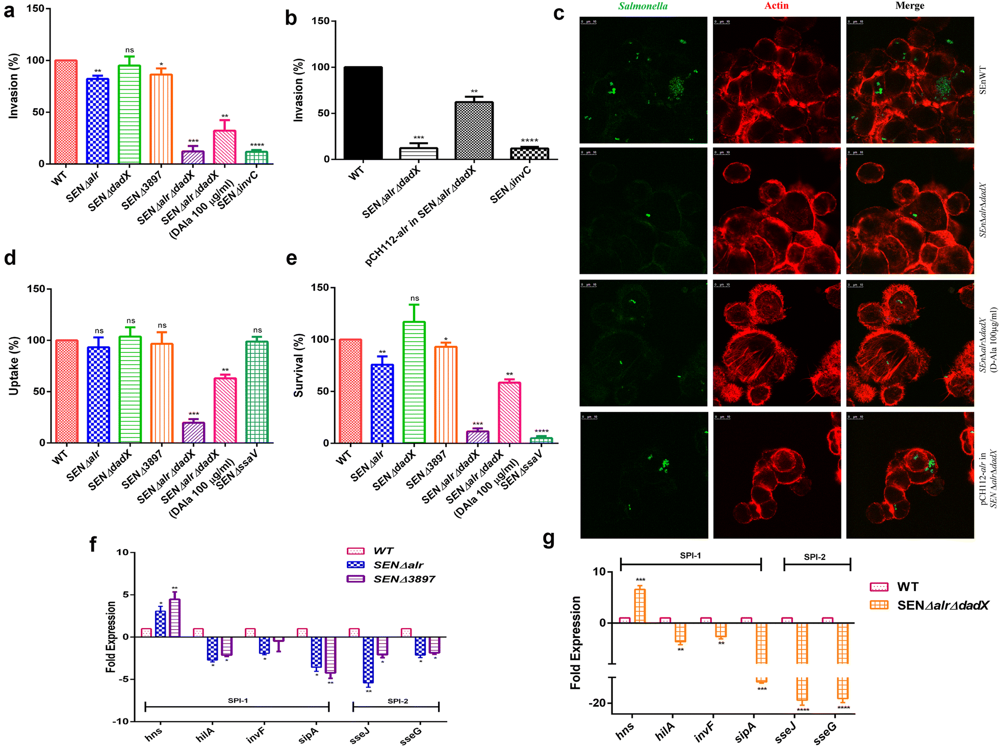 alr dadX double mutant. Additionally, in this double mutant, the SPI-2 genes (