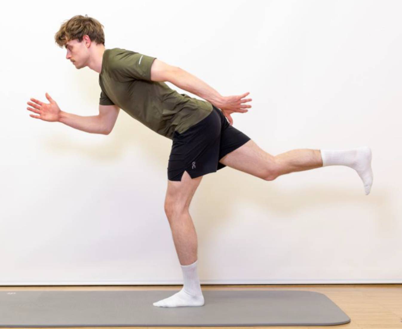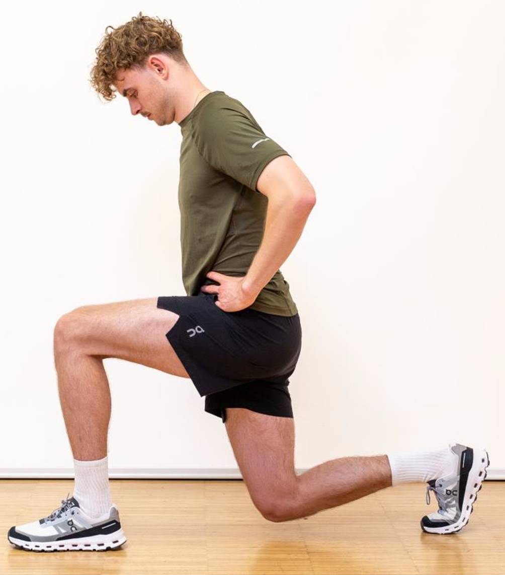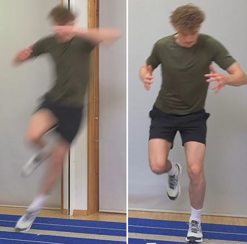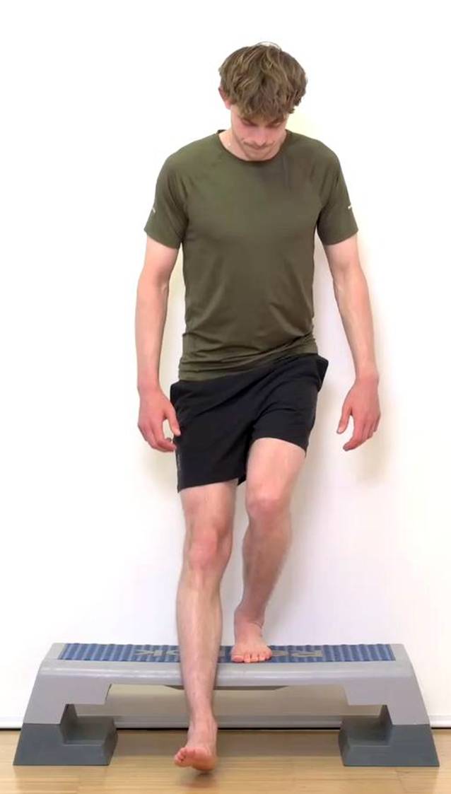 Übungen z. B.: Running Man, Lunges, Step-up, Step-down, Side-Stepping, kontrollierte Mini-Jumps, kontrollierte Mini-Jumps (Abb. 4, 5, 6 und 7)