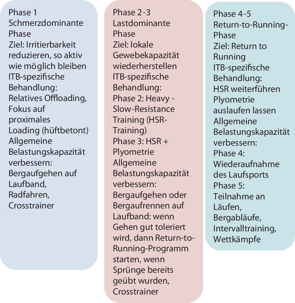 Anamnese: lateraler Knieschmerz nach ungewohnter Steigerung des Laufumfangs, Schuhwechsel oder Bergabläufen. Schmerzzunahme bis zu Messerstichen, die zum Abbruch führen. Submaximale Schmerzen verschwinden beim Wechsel vom Joggen zum Gehen.