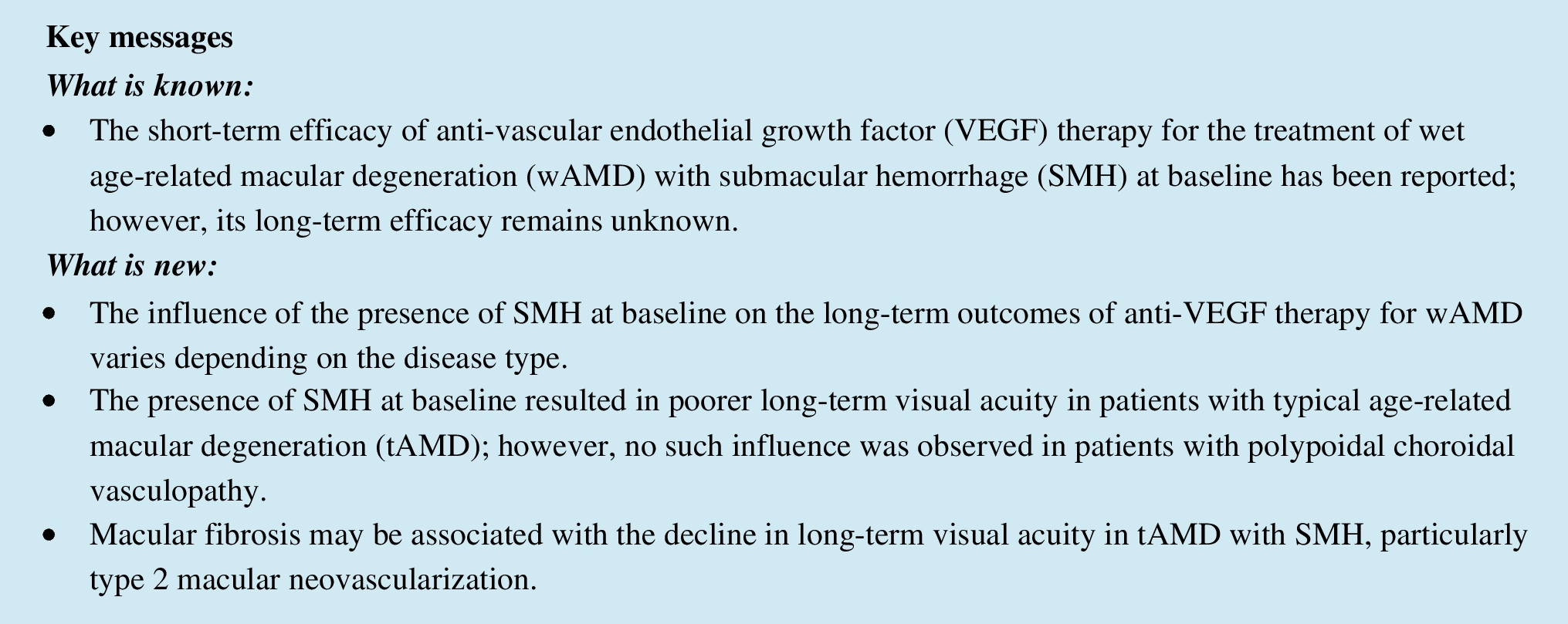 - Influence of submacular hemorrhage at baseline on the long-term outcomes of aflibercept treatment for typical neovascular age-related macular degeneration and polypoidal choroidal vasculopathy