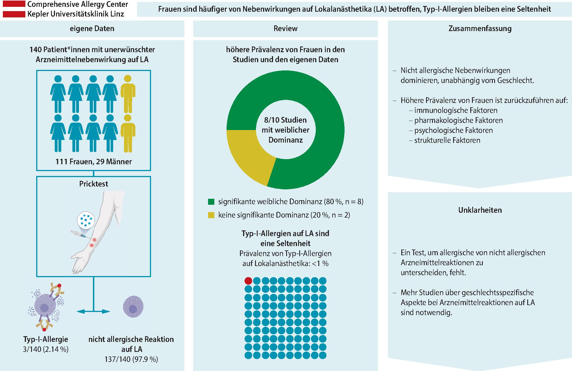 Zitierweise: Martycz F, Pfefferl L, Hötzenecker W, Altrichter S. Women are more likely to experience adverse reactions to local anesthetics – Type I hypersensitivity remain a rarity. A review and insights from a Comprehensive Allergy Center of Excellence. Allergo J Int 2025;34:262-70