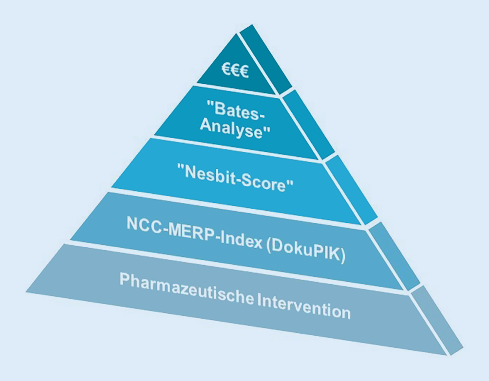 Jeder pharmazeutischen Intervention (PI) wurde durch ein Team aus erfahrenen Intensivmediziner:innen und Stationsapotheker:innen im Konsensprinzip ein Wahrscheinlichkeitswert (Nesbit-probability-Score) zugeordnet, mit dem ein unerwünschtes Arzneimittelereignis (UAE) aufgetreten wäre. Unter der Annahme, dass pro UAE eine verlängerte Liegedauer resultiert, wurden die durchschnittlichen Fallkosten der Intensivstation/Tag als Einsparungspotenzial herangezogen. Das Modell kombiniert dabei die Ergebnisse zweier internationaler Publikationen, um eine ökonomische Bilanzierung pharmazeutischer Dienstleistungen zu ermöglichen.
