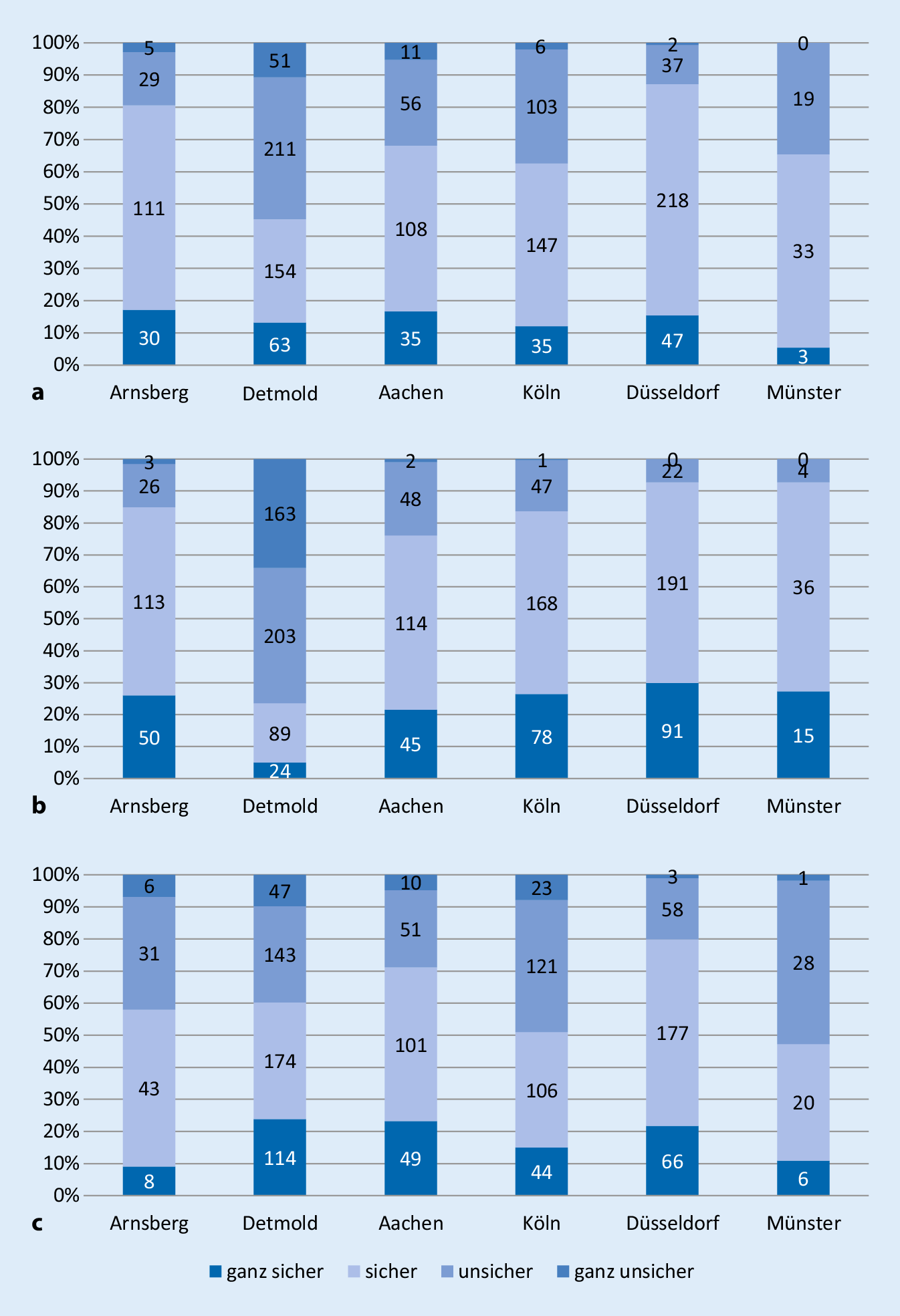 Voraussetzung für eine erfolgreiche Implementierung von Wiederbelebungstrainings in Schulen ist die Finanzierung des notwendigen Materials. Aufgrund dessen ist eine Fortführung der bereits aus Spendengeldern begonnenen flächendeckenden Beschaffung von Wiederbelebungspuppen, inklusive Zubehör für alle Schulen, erforderlich. Diesbezüglich konnte sich die Beschaffung von Klassensätzen gegenüber einer Schenkung von einer Puppe an jeden Schüler durchsetzen. Ein Klassensatz bietet den Vorteil der Wiederverwendbarkeit, während eine Puppe pro Schüler eine Weitergabe der Kenntnisse im familiären Umfeld der Schüler ermöglicht [18, 25], jedoch puppenabhängig ohne Demonstrationsmöglichkeit der richtigen Drucktiefe. Hierin könnte die Unsicherheit der Schüler des Regierungsbezirks Münster in Bezug auf die Durchführung der Herzdruckmassage begründet sein.