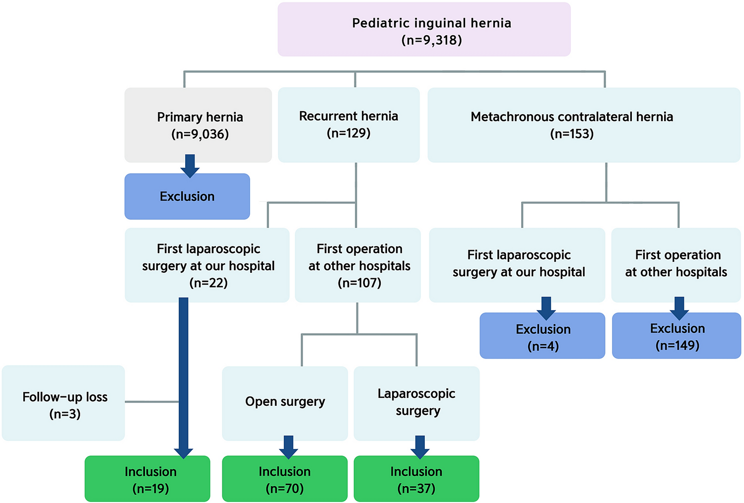 Selection of patients with recurrent PIH. PIH pediatric inguinal hernia