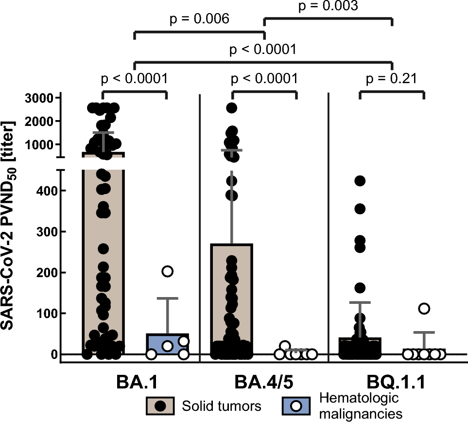 Longitudinal data on humoral response and neutralizing antibodies against SARS-CoV-2 Omicron BA.1 and subvariants BA.4/5 and BQ.1.1 after COVID-19 vaccination in cancer patients