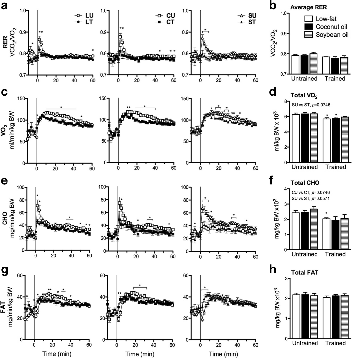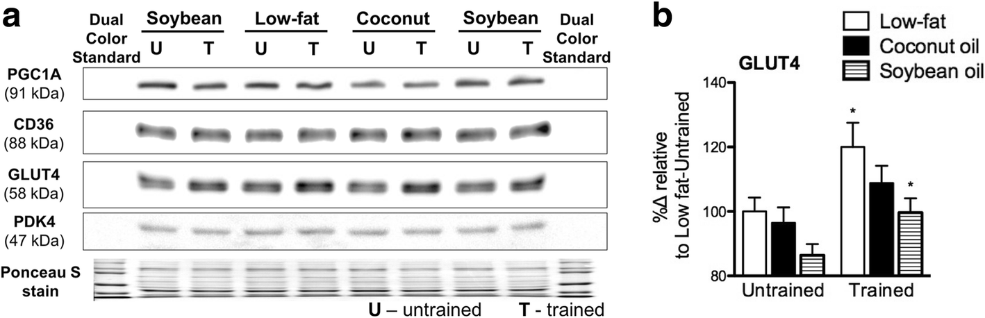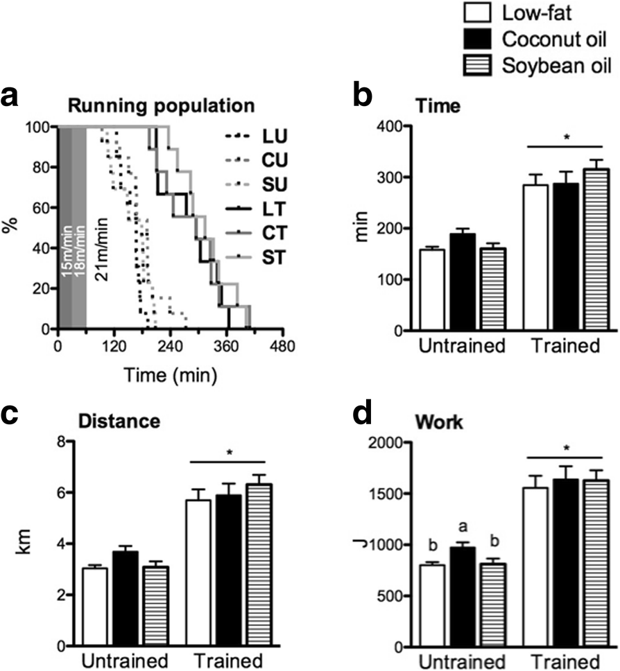 40]. We hypothesized that diets varying in fat source and proportion together with training would lead to different adaptations in the muscle and liver consequently affecting whole-body metabolism and endurance. Comparative studies on the effects of different diets with training have been conducted [
