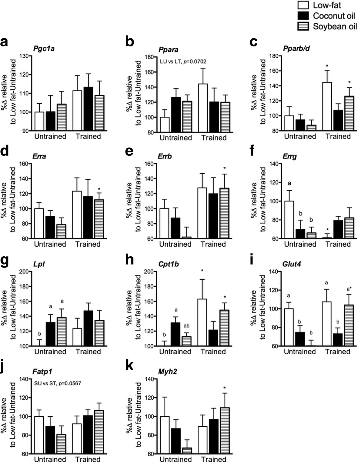 Pparb/d when trained at a lower intensity even with the same soybean oil diet [