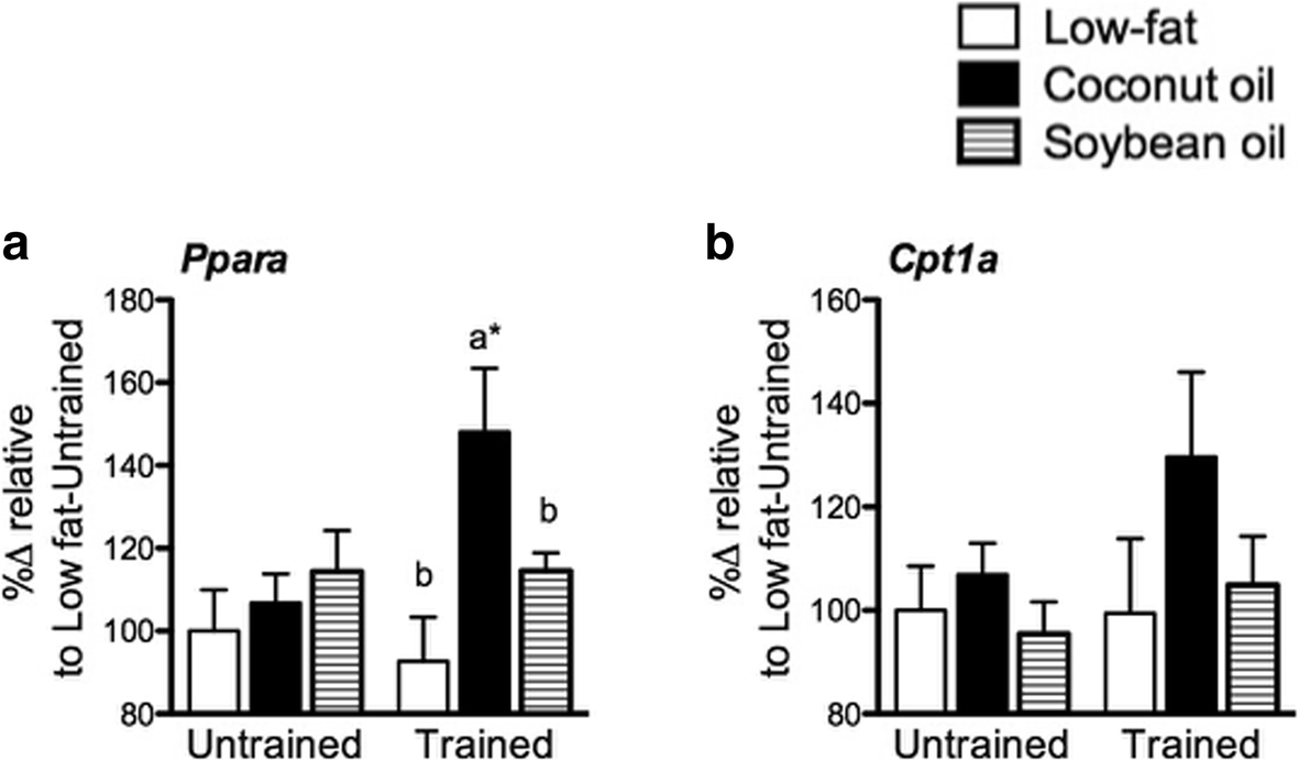 23] suggesting that PPARs respond differently with training intensity. Interestingly, coconut oil impaired the training-induced upregulation of