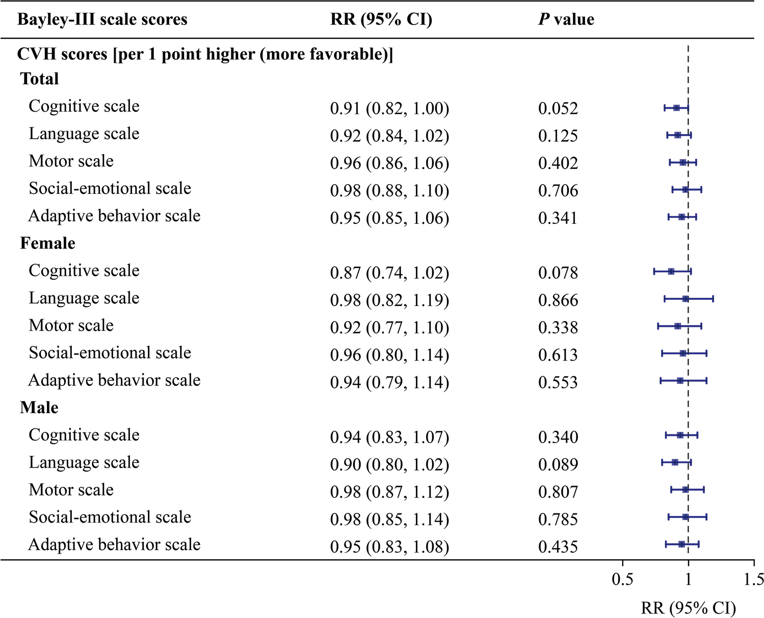 56]. In our study, the maternal CVH measure lacked three metrics, and further research is needed to determine whether the observed sex-specific disparity in offspring neurodevelopment persists with a full eight-metric composite.