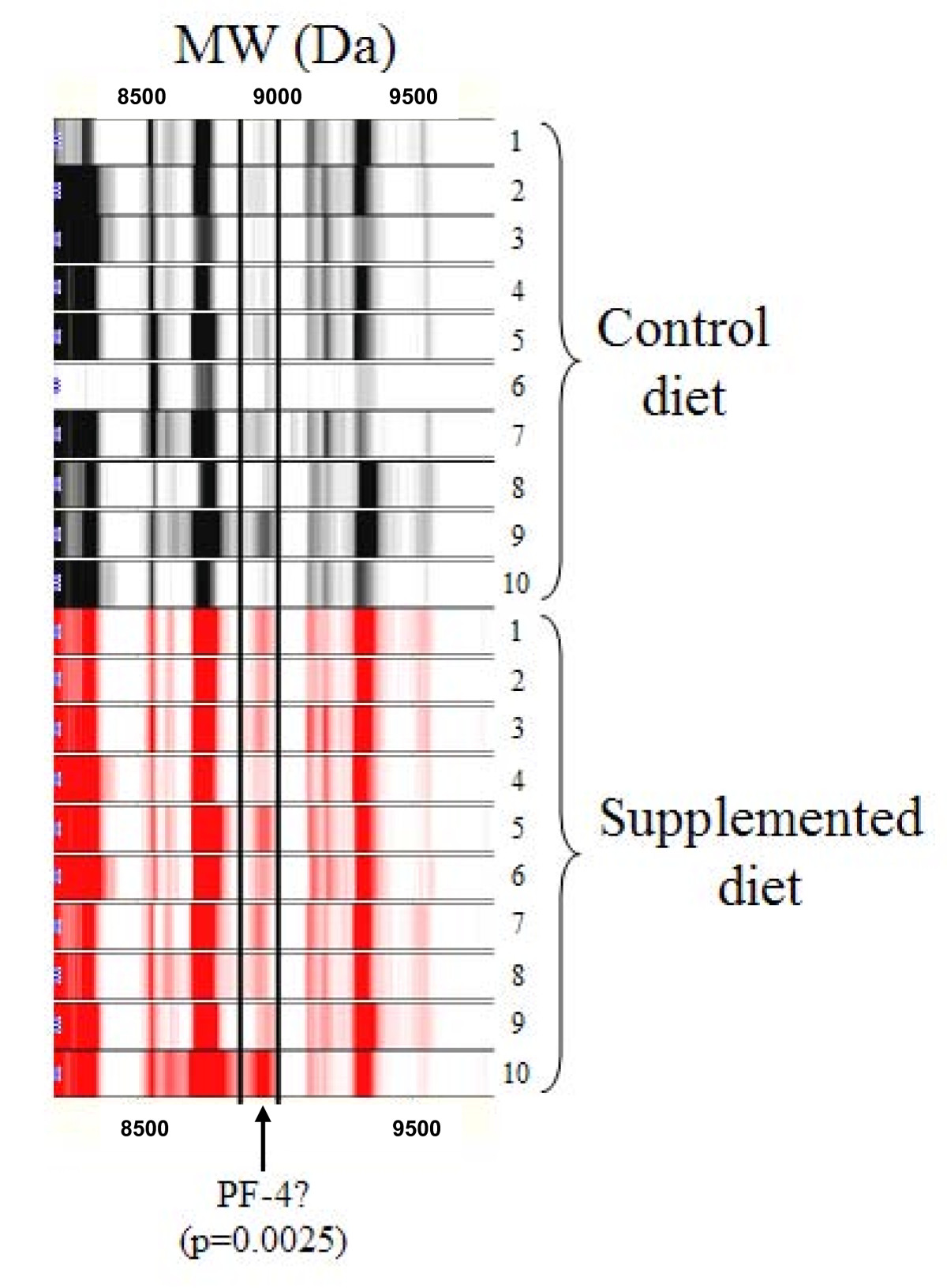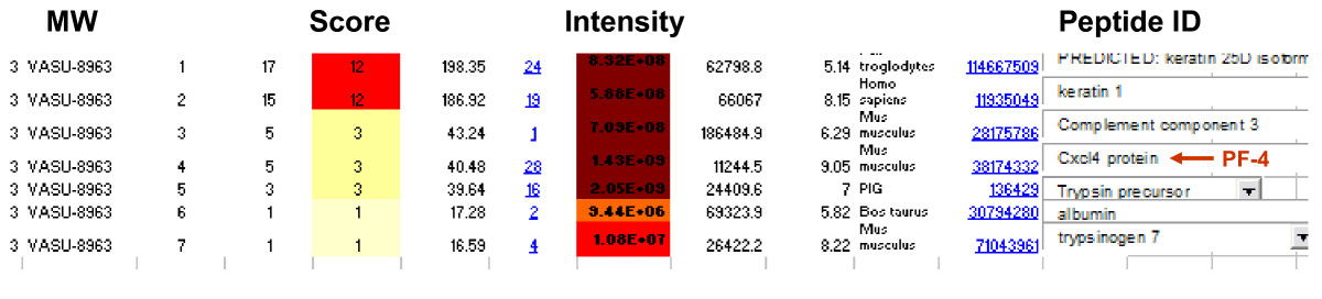 Lady transgenic mice receiving a standard diet with those receiving E/S/L-supplementation, as the latter group alone clearly exhibited the benefits. It is important to note that while we have successfully identified PF-4 as a biomarker of dietary response by differential expression, validation and isolation, univariate data analysis of the complete proteome validated an additional 9, differentially expressed peptides (p < 0.01) between these two groups of mice (Table