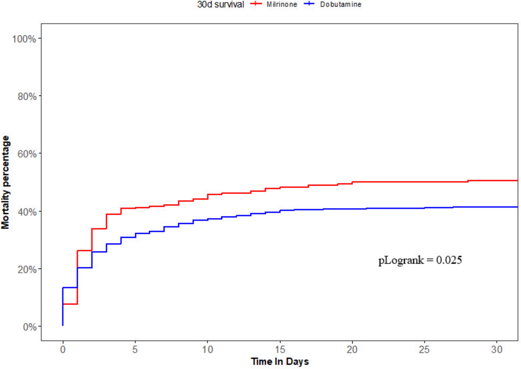 32]. Milrinone also has a more pronounced vasodilatory effect, underscored by the higher use of noradrenaline in both the unmatched and matched cohorts, though no differentiation can be made whether noradrenaline had been started before or after milrinone or dobutamine initiation. Accordingly, in bradycardic and severely hypotensive patients, dobutamine may be the preferred inotrope. Also, in cases of acute kidney injury (AKI), where milrinone accumulation is a potential concern, dobutamine may be preferred agent [