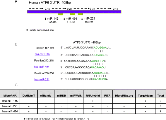 http://www.umm.uni-heidelberg.de/apps/zmf/mirwalk/micrornapredictedtarget.html which incorporates MicroRNA.org, PITA, miRDB and Microcosm) were interrogated to search for miRNA targeting human and murine ATF6.
