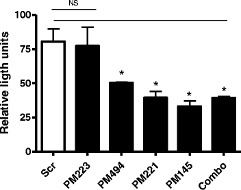 HEK293 cells (1 × 105 in triplicate) were transiently co-transfected for 24 h with a WT-ATF6 3′UTR (OriGene, Rockville, MD, USA) firefly luciferase reporter vector containing the full-length 3′UTR (250 ng), a constitutive Renilla luciferase vector (100 ng) and 30 nM synthetic premiR mimics (PM) for miR-145, miR-221 and miR-494 (Applied Biosystems, Foster City, CA, USA) as indicated or with a scrambled control. PremiR-223, a miRNA increased in the CF lung but not predicted to target ATF6, was included as a control. Transfections were performed using Genejuice (Novagen, Madison, WI, USA) for plasmid DNA and Ribojuice (Novagen, Madison, WI, USA) for miRNA in OptiMEM reduced serum media (Life Technologies, Carlsbad, CA, USA) as per the recommended conditions. Lysates were prepared and measurement of luciferase was performed using the luciferase assay system (Promega, Madison, WI, USA). Relative luciferase activity was calculated. Endogenous red fluorescent protein (RFP) expressed by the ATF6 3′UTR reporter was used to monitor transfection efficiency.