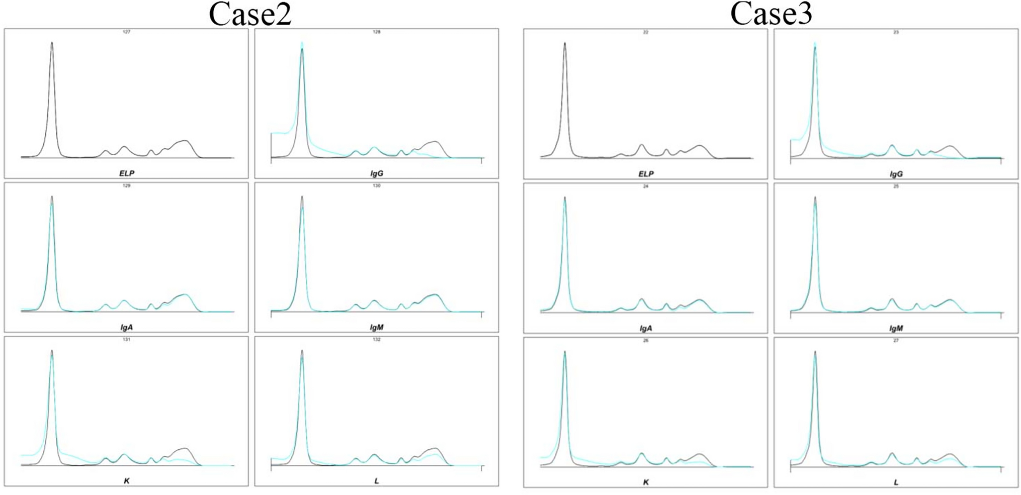 Serum immunofixation electrophoresis was performed on Cases 2 and 3. In both cases, monoclonal immunoglobulins were not detected