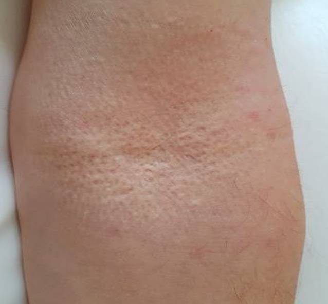 Typische Hautveränderung in der Ellenbeuge bei PXE