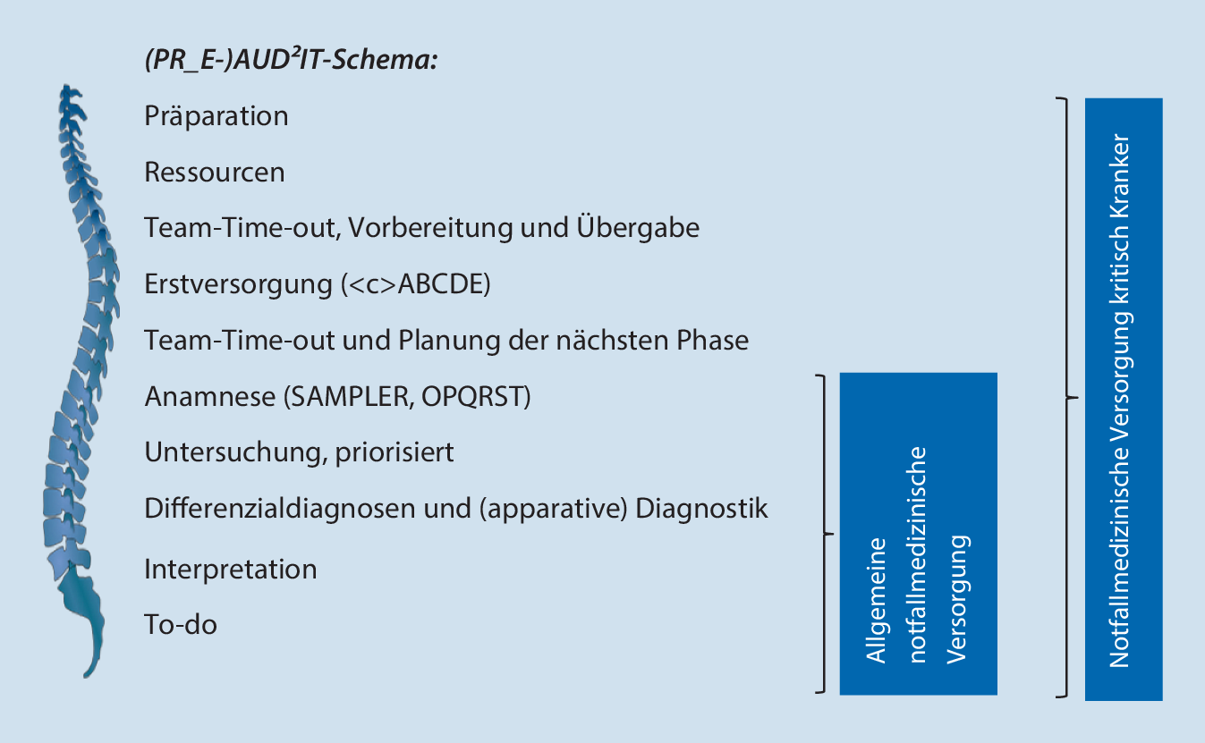 Das (PR_E-)AUD2IT-Schema als Rückgrat für eine strukturierte Notfallversorgung und Dokumentation nichttraumatologischer kritisch kranker Schockraumpatienten