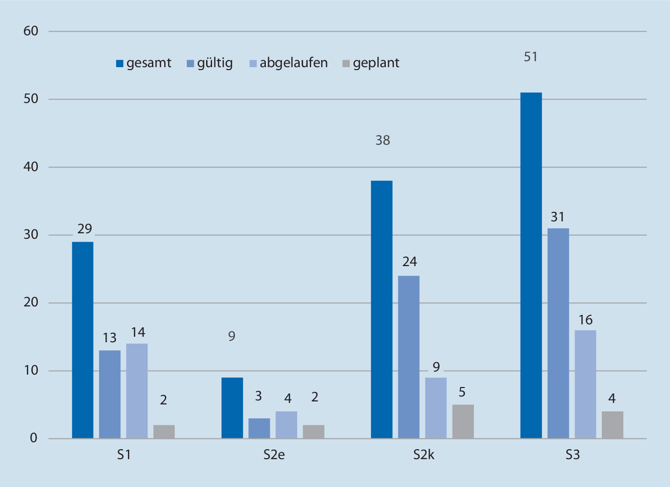 Empfehlungsgrad: Indikation | Nach Leitlinien geforderte Wirkstoffe und Applikationsweg | Vorhaltung (%) |