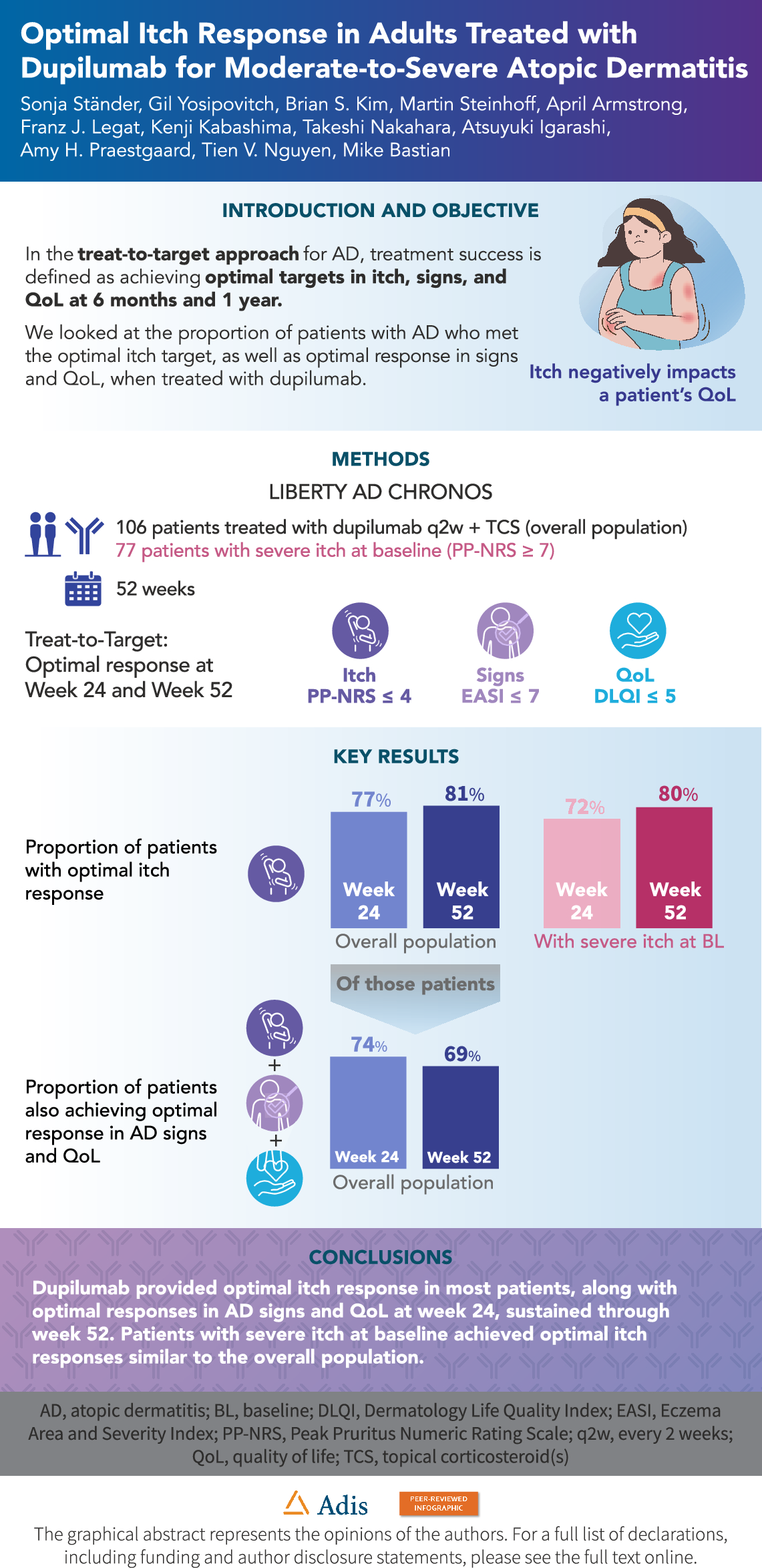 Sonja Ständer has received research grants from Almirall, Galderma, Sanofi, and Trevi Therapeutics; has served as a consultant for AbbVie, Almirall, Amgen, Beiersdorf, BMS, Clexio, Galderma, Kiniksa, Klinge Pharma, KliRNA, P.G. Unna Academy, Pfizer, Sanofi, and Vifor; has served in advisory boards for AbbVie, Almirall, Celldex, Galderma, Lilly, P.G. Unna Akademie e. V., Pfizer, Regeneron Pharmaceuticals Inc., Sanofi, and Vifor; has served as a speaker for AbbVie, Almirall, Amgen, Beiersdorf, Focus Insight, FOMF, GCI Health, Galderma, LEO Pharma, Lilly, L’Oréal, MEDahead, Medicinske Tidsskrifter, Novartis, P.G. Unna Academy, Pfizer, Sanofi, STREAMED UP, touchIME, UCB, and Vifor; and is an Editorial Board member of Dermatology and Therapy. Sonja Ständer was not involved in the selection of peer reviewers for the manuscript nor any of the subsequent editorial decisions. Gil Yosipovitch has served as an advisory board member for AbbVie, Almirall, Amgen, Arcutis, Celldex, Eli Lilly, Escient Health, Galderma, GSK, LEO Pharma, Merck, Novartis, Pfizer, Pierre Fabre, Regeneron Pharmaceuticals Inc., Sanofi, and Vifor; has received grants/research funding from Eli Lilly, Escient, Galderma, Kiniksa, LEO Pharma, Novartis, Pfizer, Sanofi Celldex, and Sanofi-Regeneron Pharmaceuticals Inc.; has been an investigator for Galderma, Regeneron Pharmaceuticals Inc., and Sanofi; and is an Editorial Board member of Dermatology and Therapy. Gil Yosipovitch was not involved in the selection of peer reviewers for the manuscript nor any of the subsequent editorial decisions. Brian S. Kim is a co-founder of Alys Pharmaceuticals and Neurommune Therapeutics; and has been a consultant for AbbVie, Abrax Japan, Almirall, Alys Pharmaceuticals, Cara Therapeutics, Clexio Biosciences, Eli Lilly, Escient Pharmaceuticals, Evommune, Galderma, Neurommune Therapeutics, Novartis, Pfizer, RecensMedical, Regeneron Pharmaceuticals Inc., Sanofi, and Septerna. Martin Steinhoff has received grants by AbbVie, Almirall, Avon, Galderma, Kiniksa, LEO Pharma, Lilly, L’Oréal, Maruho, Mitsubishi, Novartis, Pfizer, Sanofi, and Toray; has served in advisory boards for AbbVie, Alfasigma, Algorithm, Allergan, Almirall, Anacor, Avon, Bayer Health, Beiersdorf, BMS, Celgene, Chugai, Ducray, Galderma, Genentech, GSK, Kiniksa, LEO Pharma, Lilly, Maruho, MenloTX, Mitsubishi, Novartis, Pfizer, Pierre Fabre, Regeneron Pharmaceuticals Inc., Salix, Sanofi, Toray, Vertex, and ZymoGenetics; has been an investigator for AbbVie, Alfasigma, Almirall, Avon, BMS, Celgene, Ducray, Galderma, GSK, LEO Pharma, Lilly, L’Oréal, Maruho, MenloTX, Mitsubishi, Novartis, Pfizer, Pierre Fabre, Regeneron Pharmaceuticals Inc., Sanofi, Toray, Vertex, and ZymoGenetics; and has been a speaker for AbbVie, Algorithm, Almirall, Anacor, Allergan, Avon, Bayer Health, Beiersdorf, BMS, Celgene, Chugai, Ducray, Galderma, Genentech, LEO Pharma, Lilly, L’Oréal, Maruho, MenloTX, Novartis, Qatar Pharma, Pfizer, Pierre Fabre, Regeneron Pharmaceuticals Inc., Sanofi, and ZymoGenetics. April Armstrong has been an investigator and/or consultant for AbbVie, BMS, Dermavant, Dermira, Janssen, LEO Pharma, Lilly, Modernizing Medicine, Ortho Dermatologics, Regeneron Pharmaceuticals Inc., Sanofi, Science 37, and UCB. Franz J. Legat has received consulting fees and/or honoraria for lectures, presentations, speaker’s bureaus, manuscript writing or education events; participated on advisory boards; and/or served as an investigator for AbbVie, Almirall, Amgen, Celgene, DS Biopharma, Eli Lilly and Company, Galderma, Incyte, Janssen Cilag, Kiniksa Pharmaceuticals, LEO Pharma, Menlo Therapeutics, Novartis, Pelpharma, Pfizer, Sanofi, Trevi Therapeutics, and Vifor Pharma. Kenji Kabashima has received honoraria for lectures from Eli Lilly, Japan Tobacco, LEO Pharma, Maruho, Mitsubishi Tanabe Pharma, and Procter & Gamble; and has received research grants from Kyoto Hakko Kirin, Mitsubishi Tanabe Pharma, and Ono Pharmaceutical. Takeshi Nakahara has received laboratory funds from Maruho; and speaker fees from Maruho and Sanofi. Atsuyuki Igarashi has received research grants from AbbVie, Eli Lilly, Japan Tobacco, Novartis, Sanofi, and Torii Pharmaceutical; consultant fee from Japan Tobacco and Maruho; and honoraria for lectures from Maruho and Sanofi. Amy H. Praestgaard and Mike Bastian are employees of Sanofi and may hold stock and/or stock options in the company. Tien V. Nguyen is an employee and shareholder of Regeneron Pharmaceuticals Inc.