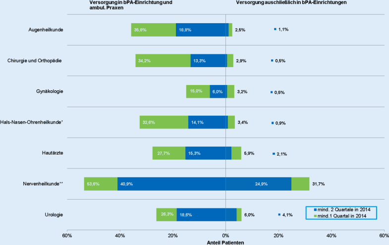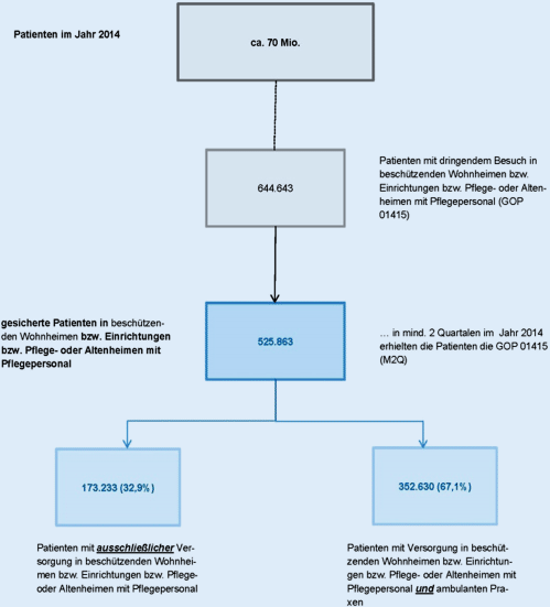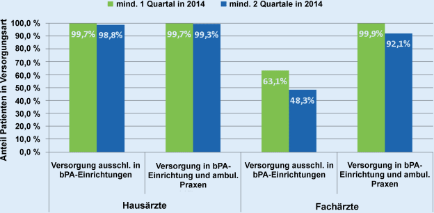 Im Jahr 2014 konnten als Patienten in bPA-Einrichtungen unter Anwendung des Aufgreifkriteriums GOP 01415 (M2Q) 525.863 Patienten identifiziert und weitergehend untersucht werden.