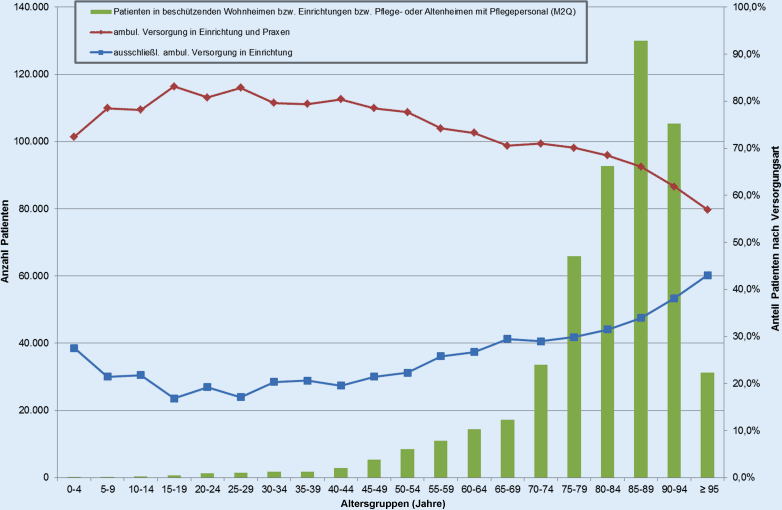 Patienten im Pflege-/Altenheim und sonstigen Einrichtungen, davon … | 155.546 | 29,6 | 370.317 | 70,4 | 525.863 |