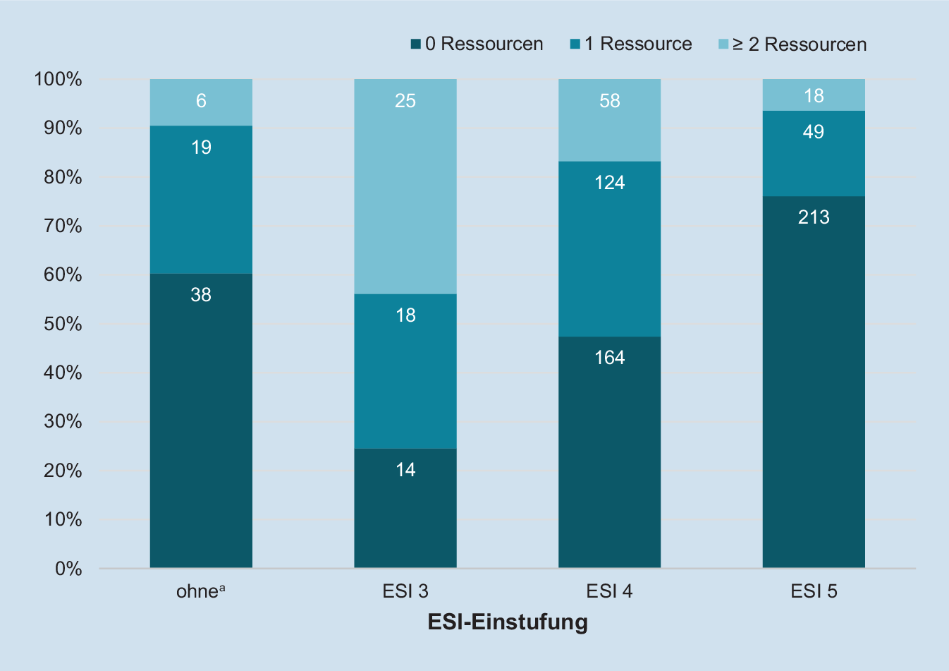 ESI-Einstufung und tatsächlicher Ressourcenverbrauch. a ESI-Einstufung nicht dokumentiert bzw. keine initiale Einstufung erfolgt (n = 63)