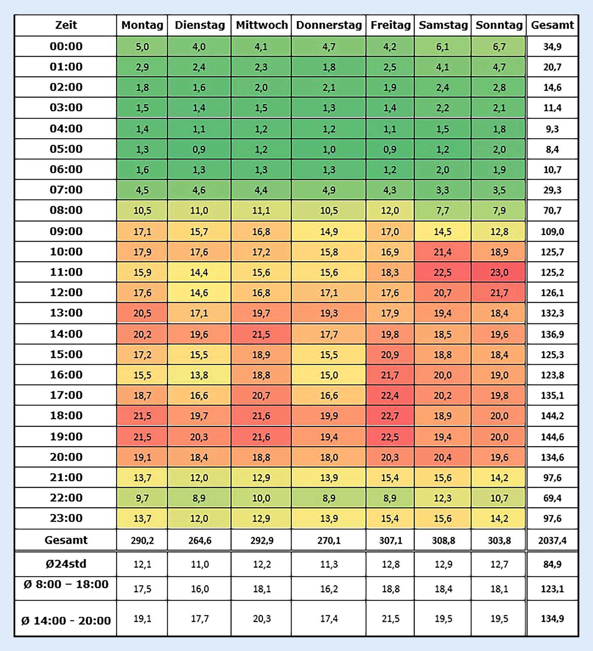 Heatmap der durchschnittlichen Anzahl der pädiatrischen Notfälle pro Tag und Stunde