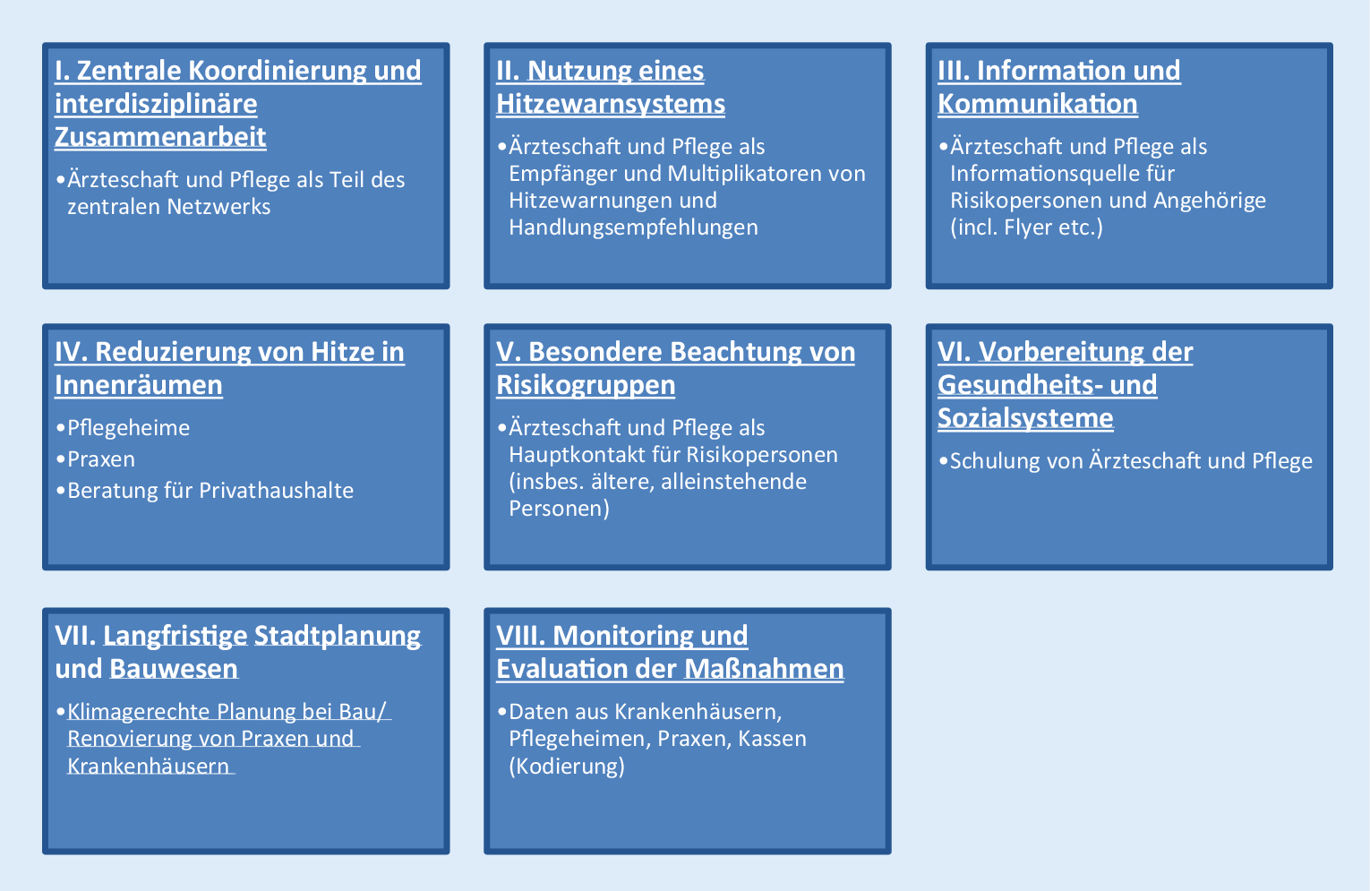 Die Weltgesundheitsorganisation empfiehlt die Etablierung von Hitzeaktionsplänen. Auch in Deutschland sollen solche sektorübergreifenden Pläne zum Hitzeschutz unter Einbindung der Ärzteschaft eingeführt werden.