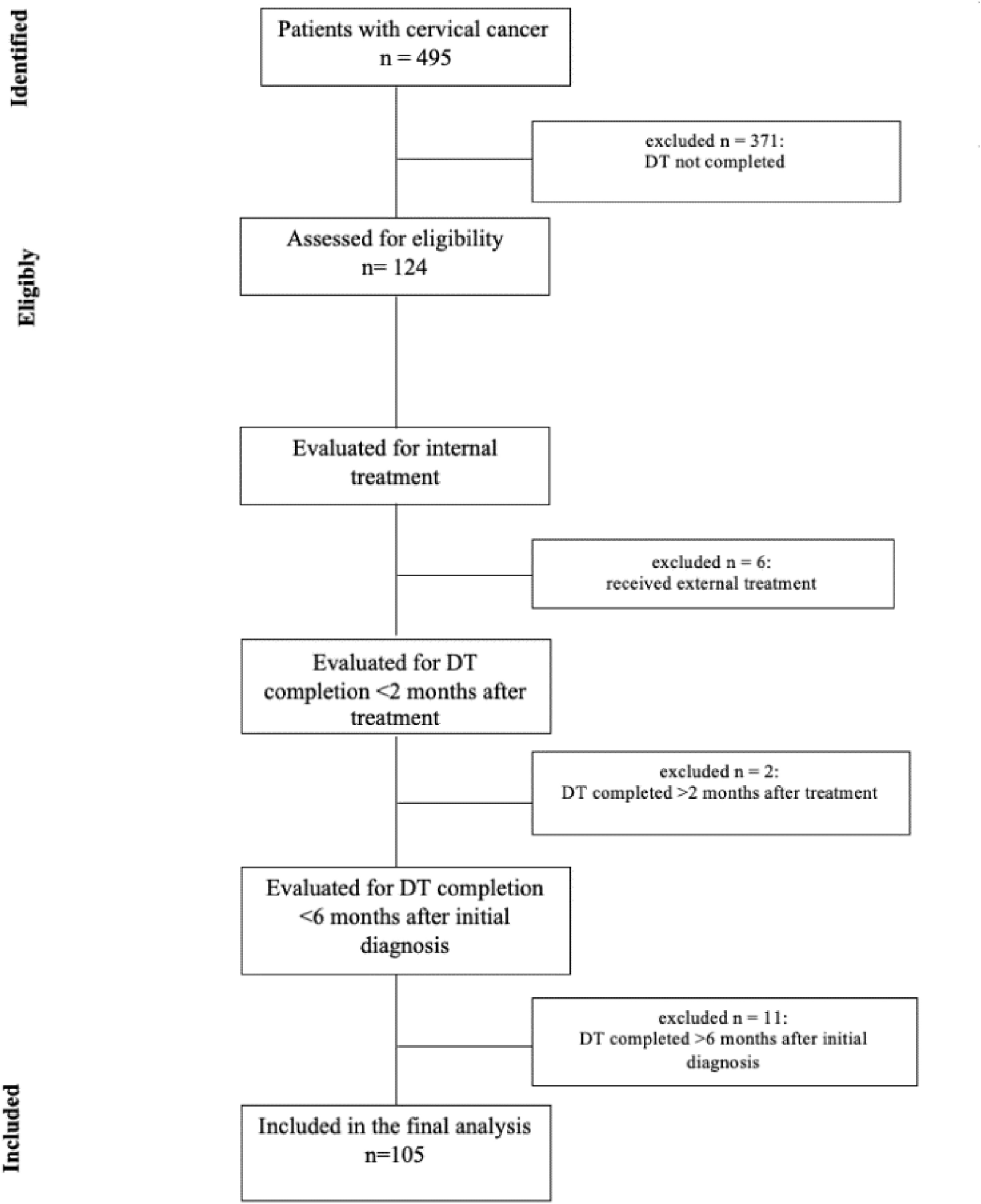 Inclusion criteria for our study were the following: Patients were initially diagnosed and treated at the RWTH university hospital. Additionally, patients were required to complete the Distress Thermometer within 2 months after treatment for cervical cancer and within 6 months after their initial diagnosis, to ensure that the measured distress stems from the condition and its treatment.