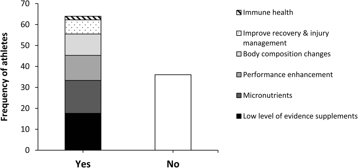 Distribution of dietary supplement use in elite athletes according to the categories used in the International Olympic Committee consensus statement on dietary supplements and the high-performance athlete