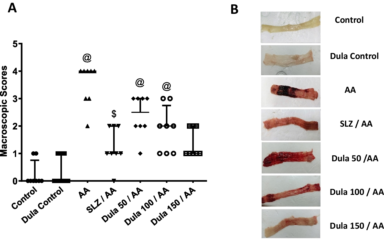 Effect of Dula (50, 100, and 150 μg/kg) on macroscopic scores
