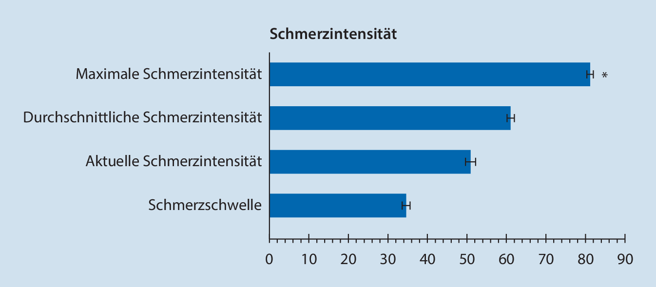 Chronische Schmerzen sind mit einer Vielzahl somatischer und psychosozialer Faktoren verbunden, die dieses multidimensionale Krankheitsbild kennzeichnen. Wie im biopsychosozialen Modell von Engel beschrieben, ist entsprechend eine diagnostisch und therapeutisch breite Sichtweise notwendig [1]. Mithilfe standardisierter Fragebögen können schmerzbezogene Beschwerden systematisch erfasst und dokumentiert werden. Hierzu zählen neben quantitativen Angaben wie der Schmerzintensität und der Schmerzschwelle qualitative Merkmale wie die Funktionsbeeinträchtigungen durch Schmerzen im Alltag.