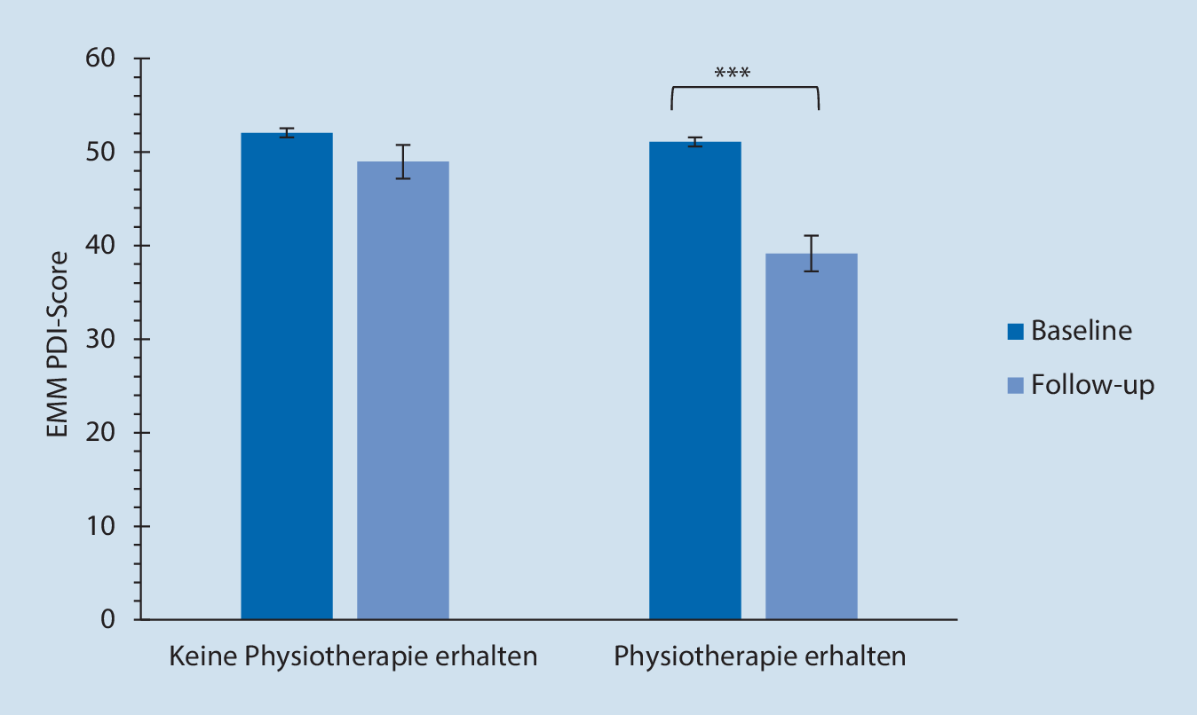 PDI-Score (EMM) in Abhängigkeit von Physiotherapie. EMM „estimated marginal means“ (geschätzte Randmittel) [15]. ***p < 0,001