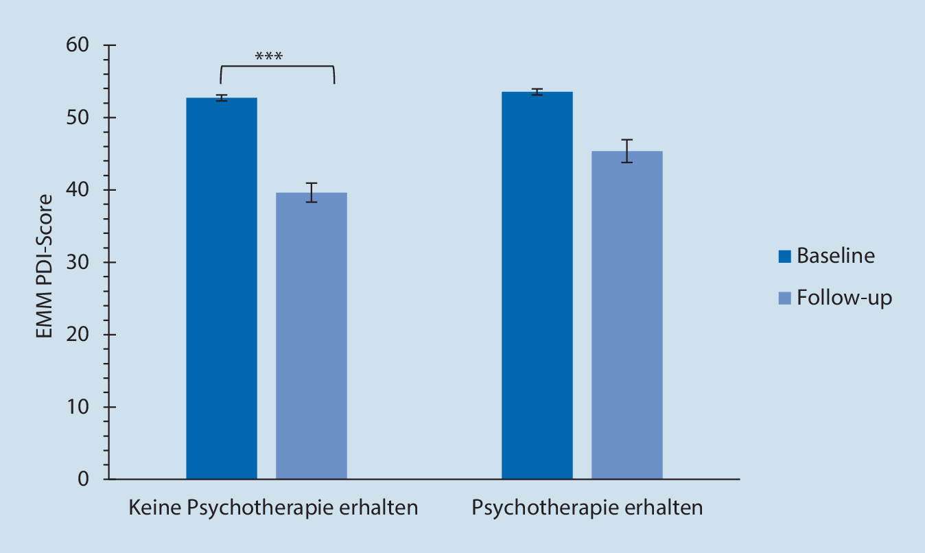 PDI-Score (EMM) in Abhängigkeit von Psychotherapie; EMM „estimated marginal means“ (geschätzte Randmittel) [15]. ***p < 0,001
