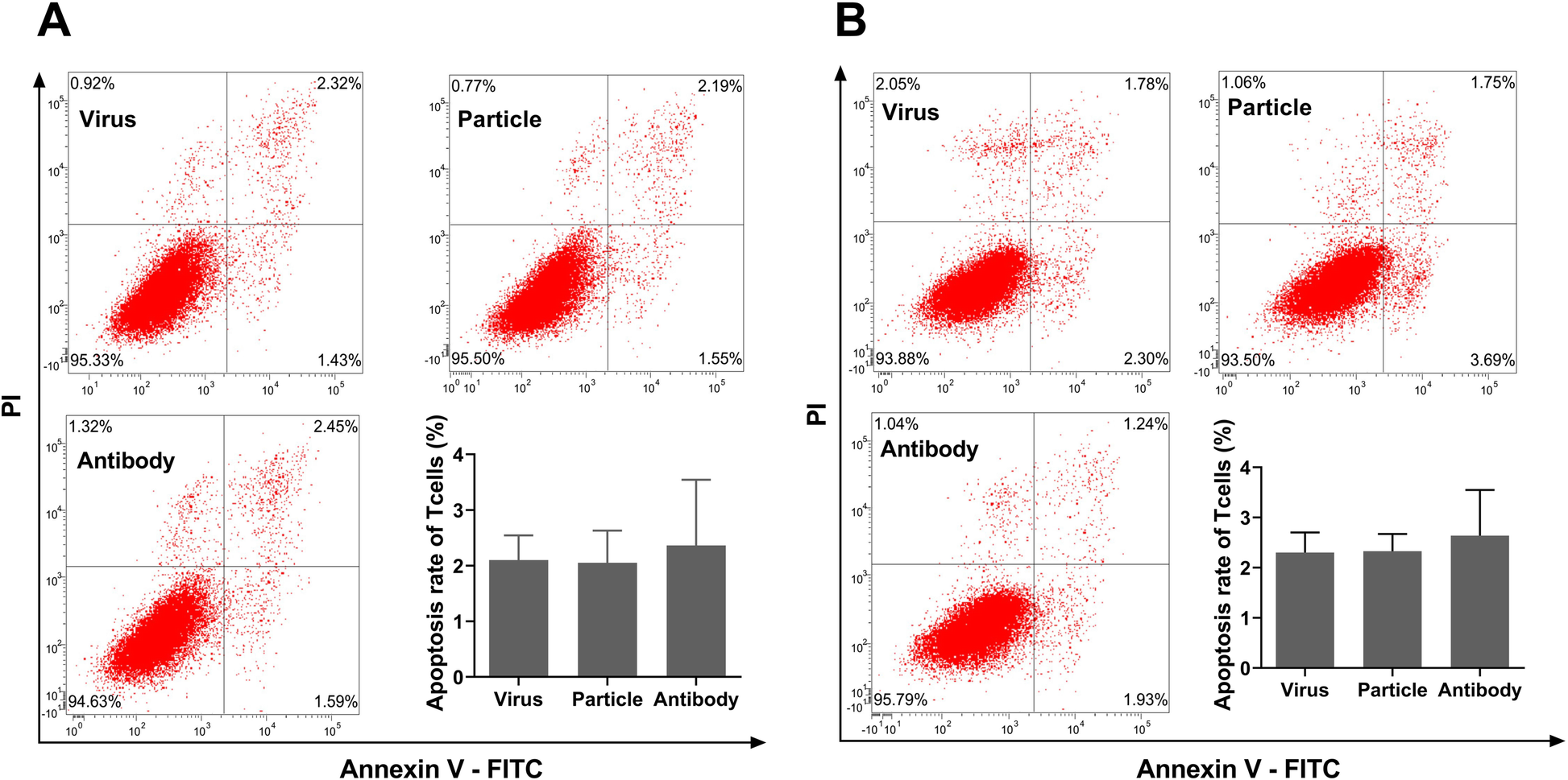 To detect the apoptosis rate of the migrated T cells, cells were stained with Annexin V-FITC and PI for 20 min according to the manufacturer’s protocol (Santa Cruz Biotechnology, Dallas, USA). The percentage of apoptotic cells was measured by flow cytometry.