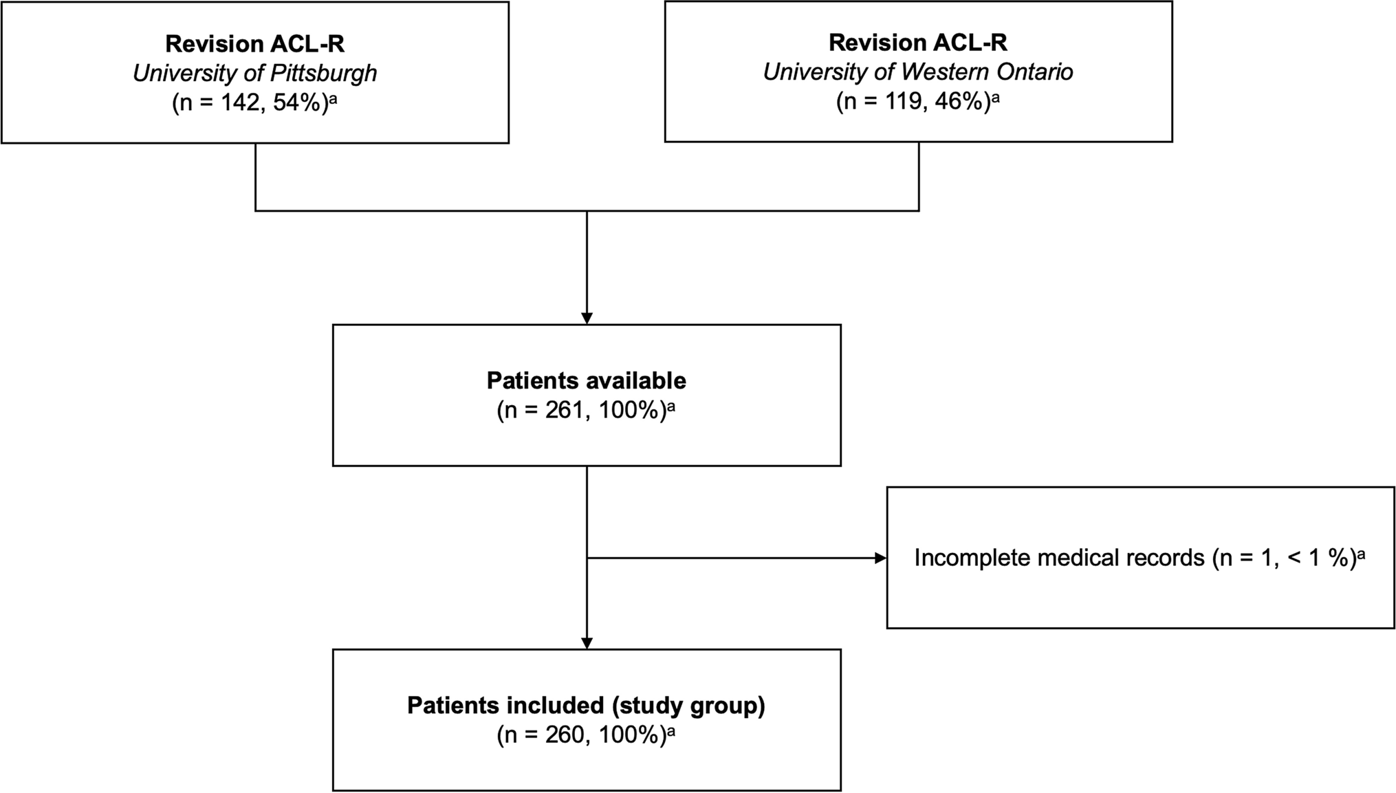Flowchart of patient recruitment. aPercentage of screened population undergoing revision ACL-R. ACL-R anterior cruciate ligament reconstruction
