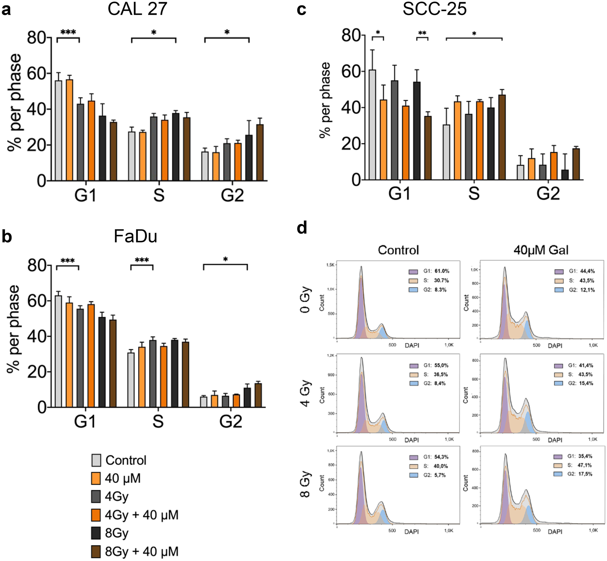HNSCC cell lines were seeded at 1 × 106 per well in 6-well plates. Cells were treated with either galunisertib, radiation, a combination of both or DMSO control 24 h after seeding. After 72 h of incubation, the cell cycle was analysed using DAPI staining and fluorescence-activated cell sorting (FACS) analysis (LSR Fortessa, BD Bioscience, USA).