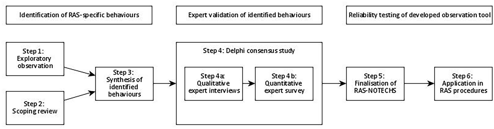 Development of RAS-NOTECHS—an observational tool for the assessment of NTS during RAS that comprises RAS-specific behaviours which are validated by RAS experts, with sub goals of: