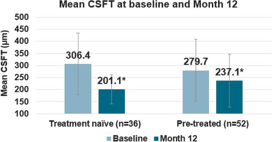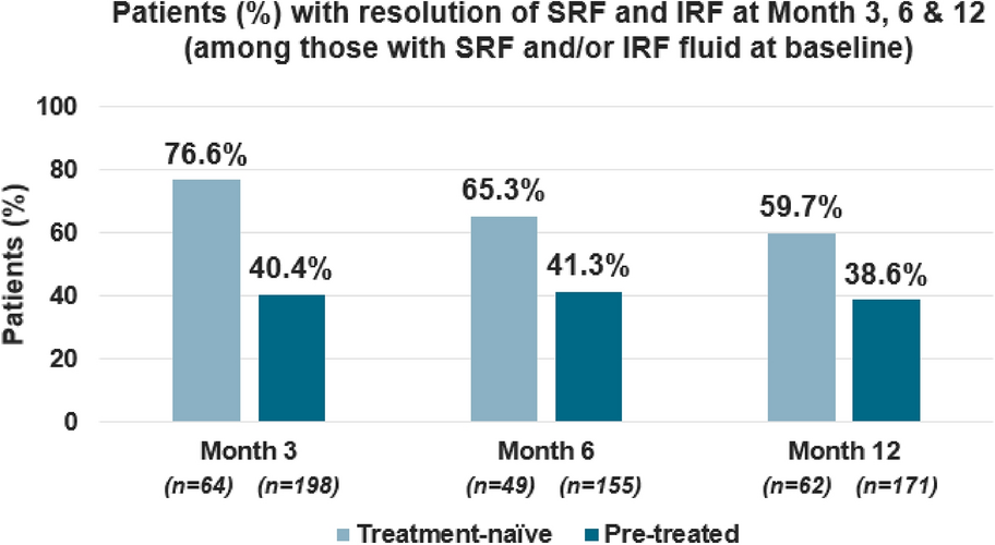 PHEASANT was a retrospective, multicenter, single-arm cohort study. The study included 438 patients, of whom 123 were treatment-naïve and 315 were pre-treated. The primary outcome was retinal fluid (subretinal fluid [SRF] and intraretinal fluid [IRF]) resolution at month 12, with change in visual and retinal anatomy parameters and safety assessed as key secondary outcomes.