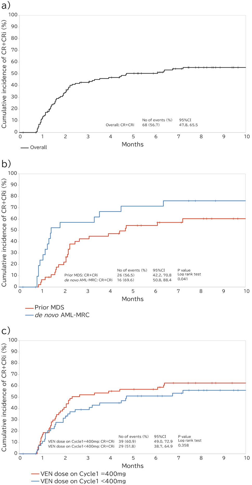 Furthermore, patients with prior MDS required a longer period of time to achieve CR + CRi than those with