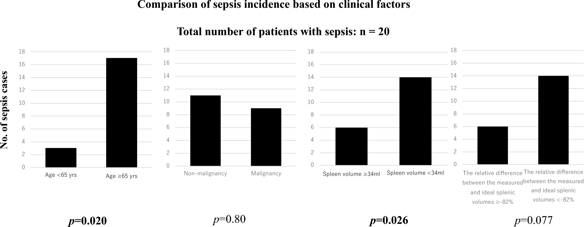 25] shows that functional hyposplenism increases the risk of infection, particularly sepsis. However, quantifying this risk relative to that of splenectomized patients remains challenging, given limited comparative data [